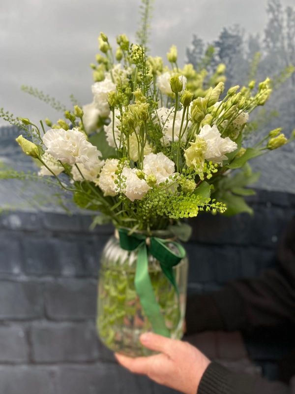 A crisp and elegant display of either all-white or all-pink lisianthus, finished with a touch of foliage and presented in a clear glass vase. Beautifully gift-wrapped using recyclable and biodegradable materials.