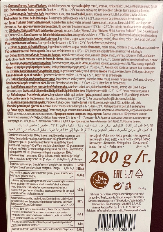 Scrumptious Sebahat Turkish Delight in the flavour of Forest Fruits. Perfect for the Turkish delight lovers and Vegan approved by the vegetarian society.