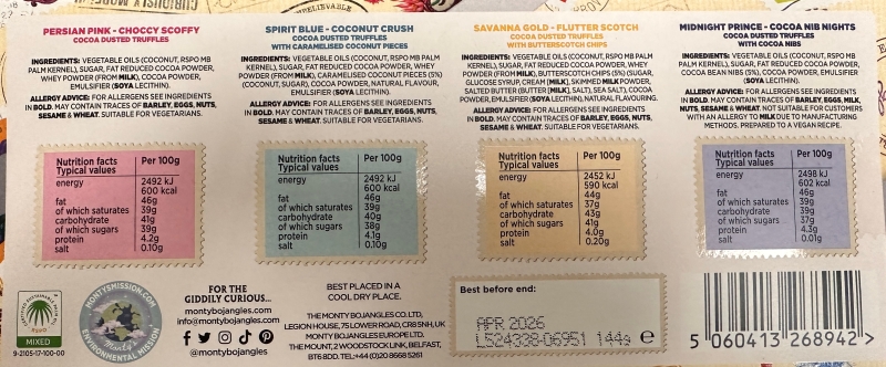 Monty Bojangles Kitten Tin Collection gift set In flavours of choccy scoffy, coconut crush, flutter scotch and cocoa nib nights.