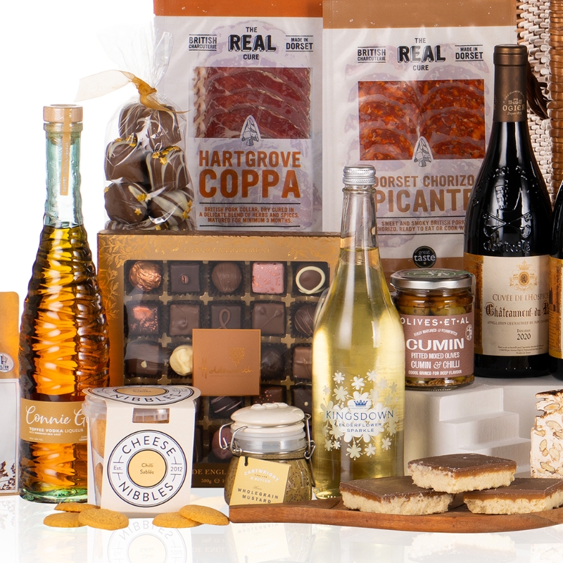 Celebrate in style with our Celebration Hamper—a luxurious, indulgent collection designed to impress clients, reward groups, or delight family with a festive feast to remember. Beautifully presented in a traditional willow trunk, this prestigious hamper brings together the finest food and drink from trusted artisans and premium producers.