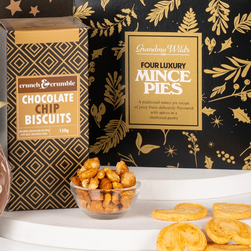 Savour the rich, nutty flair of New York Delhi ViPNuts Hot Toffee “VIP” nuts alongside the classic charm of Grandma Wild’s Luxury Mince Pies. An excellent choice for anyone who enjoys quality festive treats.