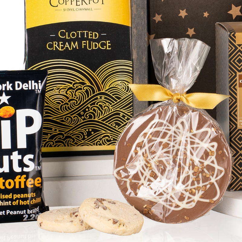 Celebrate the season in truly indulgent style with the Goodies Galore Gift—a sumptuous collection of sweet and savoury delights designed to enchant recipients, clients, and loved ones alike. Nestled in a sleek presentation box, this hamper brings together festive favourites and gourmet treats for an unforgettable holiday experience.