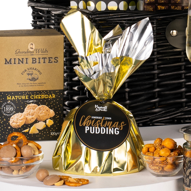 The traditional Maxwell & Franks Christmas Pudding makes a classic centrepiece, while the Vital A Slice of Heaven Vanilla & Cocoa and Stas Dark Chocolate Bar with Honeycomb add a decadent touch.