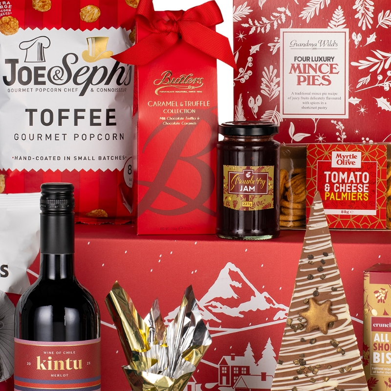 Festive pantry staples like Grandma Wild’s Luxury Mince Pies, a rich Maxwell & Franks Christmas Pudding, and a beautifully Iced Fruit Cake ensure seasonal classics are covered. Perfect for sending joy to friends and family during the festive season.