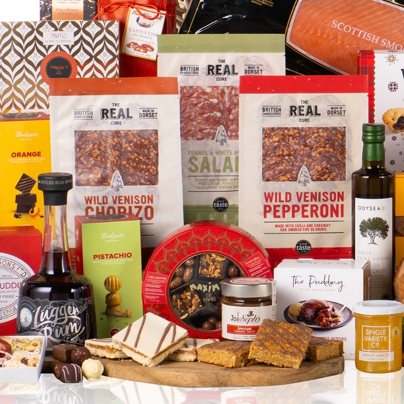 Begin the culinary journey with a rich selection of handmade cakes, biscuits, cheeses, and pâtés. Fine wines, festive spirits, and indulgent hot drinks from Cartwright & Butler and Hampstead Tea create the perfect pairing for cosy winter evenings, while the extensive range of chocolates, sweets, and savoury nibbles offer something for every taste.
